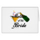 A mãe do vidro do brinde do champanhe da noiva é enchida com as bolhas da celebração, corações e cumprimentos para sua filha no dia do casamento.