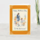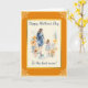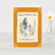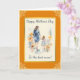 Este cartão apresenta uma imagem aquarela de uma mãe e filha de mãos dadas cercadas por flores. As cores principais são laranja e azul. Todo o texto no cartão é personalizável com o seu.