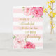 Cartão de aniversário para a Mãe na Lei com flores cor-de-água rosa, listras cor-de-rosa pinceladas, texto dourado e verso pensativo.