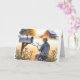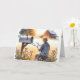 Uma idosa com palha que se senta sobre um banco ao lado de flores silvestres, lendo uma carta ao lado de uma caixa de correio aberta. O texto na letra do cobrir frontal pode ser alterado. A mensagem dentro é editável.