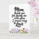 Este cartão de saudação tocante apresenta a frase honesta e sincera, "Mãe, obrigado por me amar mesmo quando eu não era fácil de amar", apresentada em tipografia elegante. A base do cartão é decorada com uma fileira vibrante e pintada à mão de flores silvestres em aquarela, criando uma estética suave e natural que equilibra o profundo sentimento da mensagem.