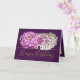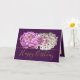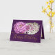 Magnífico crisântemo cor-de-rosa e flores exóticas orquídeas brancas florais buquê contra fundo cor roxa. O texto de saudação de aniversário usa uma fonte de tipografia de script atraente. As flores cobrir a frente deste cartão que pode ser usado como cartões de agradecimentos, cartão de aniversário ou qualquer outro cartão de sua escolha. Personalize-o com o seu texto e/ou imagens para torná-lo de um tipo!