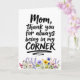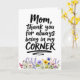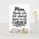 Mostre seu apoio para a mulher que sempre o apoiou com este cartão que apresenta a frase "Mãe, obrigado por estar sempre ao meu lado". O design é emoldurado por uma bela borda de flores silvestres pintadas à mão na base, simbolizando crescimento e amor constante.