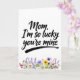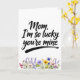 Este design alegre e brilhante exibe a frase "Mãe, eu sou tão sortudo por você ser minha" em uma tipografia estilosa e contemporânea. Um delicado arranjo de flores silvestres em aquarela em vários tons de rosa, amarelo e roxo floresce na parte inferior, dando um toque suave e artístico ao cartão.