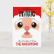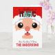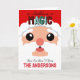 Saudações de Season com este cartão de Papais noeis bonitinho. Um grande rosto feliz de Natal Padre com olhos pretos e um nariz cor-de-rosa, uma barba grande e lisa e um chapéu vermelho com uma forma branca. Na parte superior do cartão, lê-se "Natal" (em texto preto) e abaixo dessa "magia" (em texto vermelho e verde). Na parte inferior do cartão, lê-se "de nossa casa para a sua" (em texto preto) e uma modelo para adicionar seu nome de família em texto vermelho.