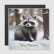 Este cartão magnético de Natal apresenta um guaxinim bonito em uma Floresta Mágica.