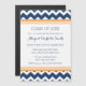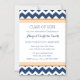 Cartão de modelo de convite para festa de formatura magnético personalizável, em forma de tramas de chic e elegante laranja brilhante, azul escuro e branco retrô chevron zigzag.