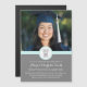 Cartão de modelo de convite à festa de formatura magnética personalizável, em azul-azul-azul-azul-turquesa, cinza de carvão escuro e design moderno branco.