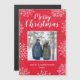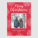 Este cartão magnético de Natal contém a expressão "Feliz Natal" em letra de banda desenhada, com um design branco de floco de neve sobre fundo vermelho festivo. Você pode adicionar sua própria foto e detalhes ou usar Personalizar se preferir alterar o tamanho ou o estilo da fonte.