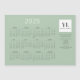 Cartão de calendário magnético Trendy e Chic 2025. Este modelo de cartão de negócios apresenta o nome da sua empresa e o logotipo quadrado e contatos opcionais e detalhes das mídias sociais. O texto aparece em preto-e-vírgula e verde mais claro, contra um fundo verde-menta.