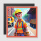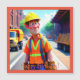 Este cartão de aniversário magnético de desenho animado apresenta um trabalhador de construção feliz no trabalho.