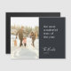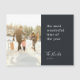 Um cartão magnético fotográfico de feriado moderno, com um mínimo moderno de tipografia, citando "a época mais maravilhosa do ano", emparelhado com uma letra manuscrita para o nome da sua família, em branco, com uma cor azul de recurso preto no estilo de design "escandinavo". A saudação, o nome e o ano podem ser facilmente personalizados para um toque pessoal. Uma design moderna, minimalista e contemporânea para se destacar nesta temporada de férias! A imagem mostrada é apenas para fins de ilustração para ser substituída pela sua própria foto. A imagem é de uma jovem família de quatro jogando na neve com um pano de fundo de madeira e pinheiro.