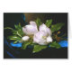 "Giant Magnolias on a Blue Velvet Cloth" pintado por Martin Johnson Heade em 1890; óleo na canvas; National Gallery of Art, Washington. Martin Johnson Heade, 1819 - 1904, foi um prolífico pintor americano conhecido por suas paisagens salgadas de pântano, paisagens temperadas, retratos de aves tropicais e ainda vidas. Seu estilo e matéria de pintura, embora derivada do romantismo da época, é considerado pelos historiadores da arte como um desvio significativo do de seus pares.