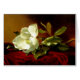 "A Solteiro Magnolia on Red Velvet" pintado por Martin Johnson Heade; óleo na canvas; Coleção Privada. Martin Johnson Heade, 1819 - 1904, foi um prolífico pintor americano conhecido pelas suas paisagens de pântanos salgados, paisagens temperadas, retratos de aves tropicais e ainda da vida. Seu estilo e matéria de pintura, embora derivada do romantismo da época, é considerado pelos historiadores da arte como um desvio significativo do de seus pares.