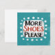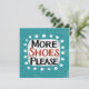"Mais Calçados, por favor" é um design de texto divertido com uma forma de sotaque branca cercado por pontos brancos texturizados.