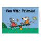 Esta imagem de "Maisy vai às mostras Maisy do pré-escolar" (ilustrado por primos de Lucy e publicado pela imprensa do Candlewick) e Dotty apreciando um dia bonito fora. Ambos os caráteres têm sorrisos enormes em suas caras enquanto apreciam o balanço do campo de jogos. Os insetos e as flores adicionam pontos da cor rica a esta imagem do divertimento, que fará a pouco querer obter exterior e os joga, demasiado!