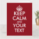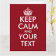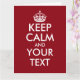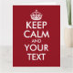 Make your own big oversized keep calm greeting cards. Funny Keep Calm and your text greeting card for men, women and kids. Cute vintage typography template slogan with crown. Personalizable quote and custom background color. ie bright red. Create your own fun keep calm and carry on parody. Very large cards for him and her, mom, dad, husband, wife, uncle, aunt, son, daughter, father, mother, grandpa, grandma, brother, sister, friends, family etc. Trendy keepcalm meme. Extra large XL size. Bigger then normal. It's Huge! Fun for Birthday, Christmas Holiday, Thank yous etc.
