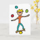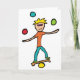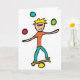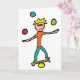 Fazendo malabarismo com três bolas e balanceando em um conselho de bola real - um malabarista de circo com estilo e habilidades.