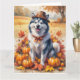 Cartão Malamute do Alasca no outono deixa arte de ação de