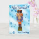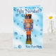 Um tradicional pirata alemão de madeira que retrata um oficial militar com uniforme azul e laranja. O quebra-cabeça é sobreposto a uma imagem de fundo azul com flocos de neve. O texto em espanhol com a menção "Feliz Navidad" (Feliz Natal) também aparece. Adicione seu próprio texto adicional.