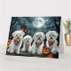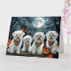 Libere o espírito assustador com esta design sombria do Dia das Bruxas apresentando um bando de cachorros sob um céu escuro e iluminado, cercado por morcegos voadores e abóboras brilhantes. Perfeito para aqueles que amam um toque de diversão terrível com seus amigos peludos!