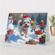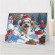 Cartão Malti Tzu correndo em neve com chapéu de Natal