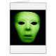 A alienígena verde gosta da cara com grandes olhos roxos.