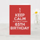 Cartão Mantenha a calma apenas 65.a placa de aniversário