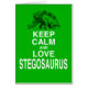 "Mantenha a calma e o Stegosaurus do amor" é nosso original, o design do divertimento baseado na paródia do famoso "mantem a calma e continua" o slogan britânico dos anos 40.