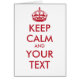 Cartão MANTENHA CALMA e o texto personalizado do TEXTO