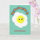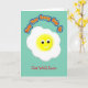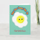Um cartão de boas-vindas divertido com um rosto em uma ilustração de ovo frito e um gráfico de texto em azul vermelho e amarelo "Mantenha seu lado ensolarado para cima". Mostrado aqui como um cartão de melhoras, mas sinta-se livre para mudar a saudação para uma de sua escolha.
