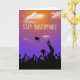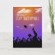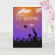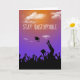 Silhueta de multidão formando com boné jogado no céu por pôr do sol para parabéns de graduação. O texto é editável.