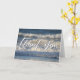 Usando uma fonte moderna e casual de escrita manual, criei gráficos que retratavam as palavras "obrigado você". (Um é branco, o outro preto; empilhado e minimamente deslocado para criar um sutil efeito sombra que faz as palavras se destacarem.) O fundo foi coberto por uma foto de ondas oceânicas espumantes acentuando a bonito água azul profunda com reflexões brilhantes nas águas rasas da praia Topsail. 100 //