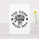 Design engraçado com uma mão de esqueleto segurando um controle e a legenda "O jogo nunca acaba".