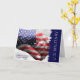As estrelas e listras, o tema vermelho, branco e azul deste cartão de graduação é perfeito para a jovem ou jovem formado pela Academia Militar. As duas mãos com a bandeira americana representam a criança crescendo e saindo para servir nosso país.