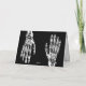 Ilustrações de mão de esqueleto em branco num elegante cartão de saudação preto para o Dia das Bruxas. Todos os dentro de texto e saída são personalizáveis. A dentro também está decorada.