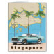 Mapa ilustrado de Cingapura em um belo poster de estilo vintage com um super carro clássico.