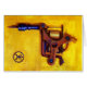 A máquina do tatuagem do vintage (amarelo) é uma parte original da arte dos meios mistos por Jessica Haeckel. É uma de uma série de suas pinturas antigas da arma do tatuagem. Igualmente disponíveis está vermelhos, azuis, e o verde.