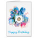 Impressão floral de fluido solto no estilo desenhado pela mão de aquarela moderna. Impressão de flor moderna, cor azul e rosa, em negrito e colorida, sobre fundo branco. Na tendência do design floral moderno.
