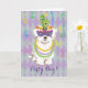 Um filhote malteses bonito, vestido com máscara e miçangas de penas festivas, pronto para diversão em Mardi Gras ou em qualquer outro momento. presente de excelente para você e sua família e amigos amantes de Maltês.
