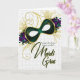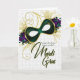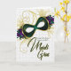Cartão Mardi Gras Violet, Dourada e Máscara Verde Frances