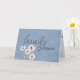 Aniversário para cunhada sobre bolinhas brancas e fundo azul com margaridas brancas.