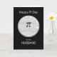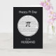 Seu marido não vai gostar de receber esse cartão irracional! Pi Day é um feriado pouco conhecido, exceto aqueles que gostariam disso! Um círculo branco com borda, tem dentro de dígitos aleatórios com um fundo preto por toda parte. Um símbolo pi é colocado no centro do círculo e na parte superior dos números. Este cartão é perfeitamente dado no Pi Day com sofisticação.