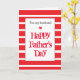 Um cartão de Dia de os pais vermelho moderno para o marido. Ele tem um fundo vermelho listrado na frente junto com um pequeno coração vermelho. A dentro desta placa de Dia de os pais Feliz moderna lê uma mensagem de Dia de os pais, que você pode facilmente personalizar se quiser. A parte de trás apresenta o design striped junto com o coração vermelho com um lugar para você se personalizar com o ano. Isso faria um excelente para ele.
