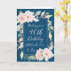 Feliz aniversário de 40 anos em azul marinho com flores cor d'água cor-de-rosa e verso pensativo.