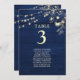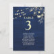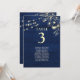 Guie os convidados para suas mesas com este elegante cartão azul de assento de casamento, com luzes românticas de cordas e detalhes florais de ouro. Uma adição perfeita aos casamentos rústicos, invernais ou noturnos, isso adiciona encanto e clareza à sua recepção.
