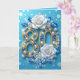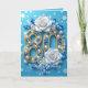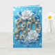 Este elegante design de cartão de aniversário de 80 apresenta o número "80" feito em filigrana de ouro, enfeitado com pérolas luminosas e gemas azuis de marinho radiante. Duas rosas brancas pristinas, símbolos de graça, descansam entre sotaques e pérolas espumantes em forma de diamante. O pano de fundo azul claro com um padrão semelhante a um bokeh cria uma sensação de sonho e celebração. Esta é uma caixa de joias de sofisticação e glamour, perfeita para um grande aniversário de 80. O texto na frente e no dentro é totalmente personalizável, permitindo que você crie uma manutenção verdadeiramente única.