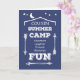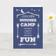 Três setas brancas, estrelas, lua e belas fontes contra um fundo azul marinho. Seu primo vai adorar receber esse cartão Pensando em você enquanto ele está se divertindo no acampamento. Este design colocará um sorriso em seu rosto.