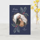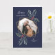 Cartão com fotos de férias dobrado único e moderno, com uma estrutura geométrica (faux) de folha de ouro moderna, com nossas amoras e folhas de coloração oca. Todo texto é personalizável.