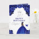 Este cartão de aniversário elegante e glamouroso pode ser personalizado com um nome ou título como filha, neta, sobrinha, amiga, etc. O design apresenta uma bela princesa com cabelo de morena em um vestido de bola azul marinho. O texto combina o script manuscrito e as fontes sans serif modernas para um aspecto elegante e sofisticado. Os arranjos florais, borboletas e confete de ouro criam a mistura perfeita de rústicos e quicos. Gráficos por www.etsy.com/uk/shop/SunflowerDayLove
